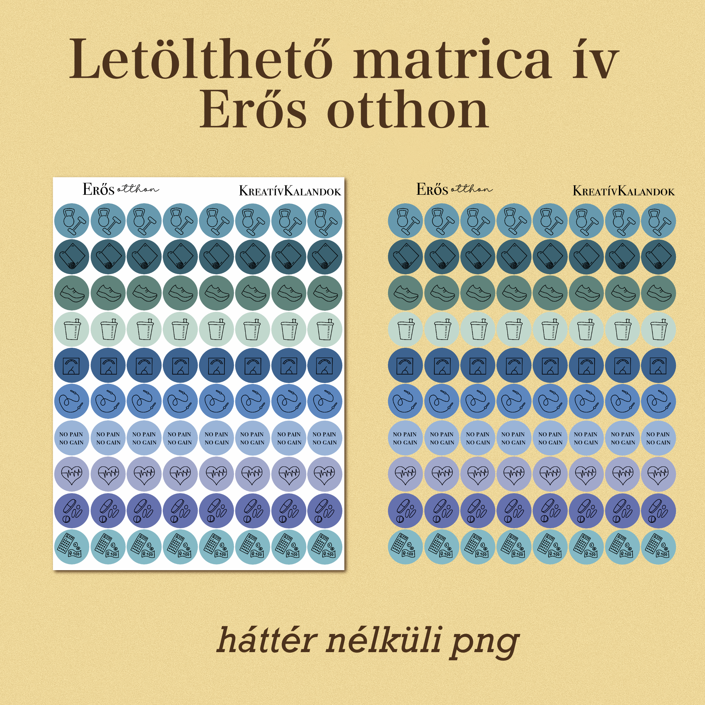 Digitális, letölthető matrica ív háttér nélküli PNG formátumban, így nyomtatható és digitális naplókban (pl. iPad tervezőkben) is könnyedén használható. Az Edzés ikon matrica ív praktikus és esztétikus megoldás mindazoknak, akik szeretik vizuálisan követni a fejlődésüket és edzésrutinjukat.