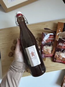 - Szűrd át egy kis szűrő segítségével, majd töltsd csatos üvegbe.